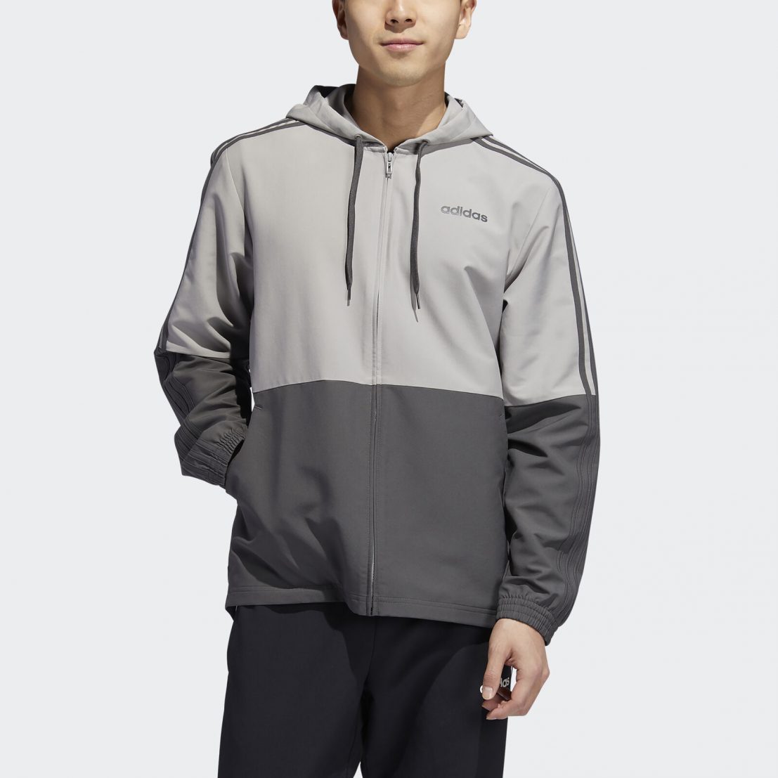 This windbreaker provides coverage for cool-downs and casual wear. Made of lightweight polyester with a full zip, the jacket has a drawcord-adjustable hood for windy weather. Classic 3-Stripes show your adidas pride.