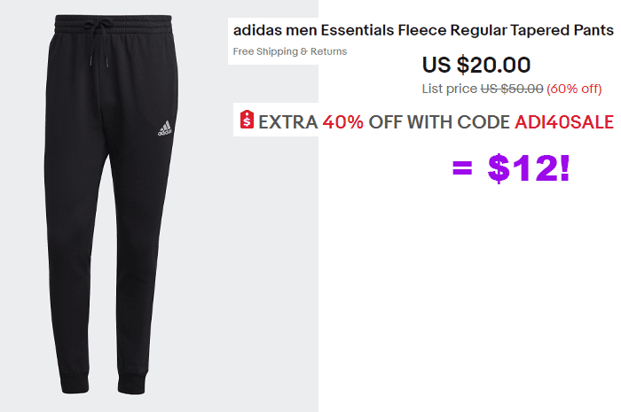 The official adidas store on ebay is offering an extra 40% off select items! Check out this deal on popular fleece pants!