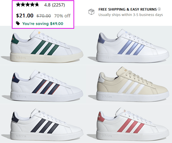 adidas Women’s Grand Court Shoes for $21 (reg $70)