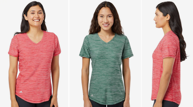 adidas Women’s Melange Tech V-Neck T-Shirts for $17.99 each (Reg $28 each)