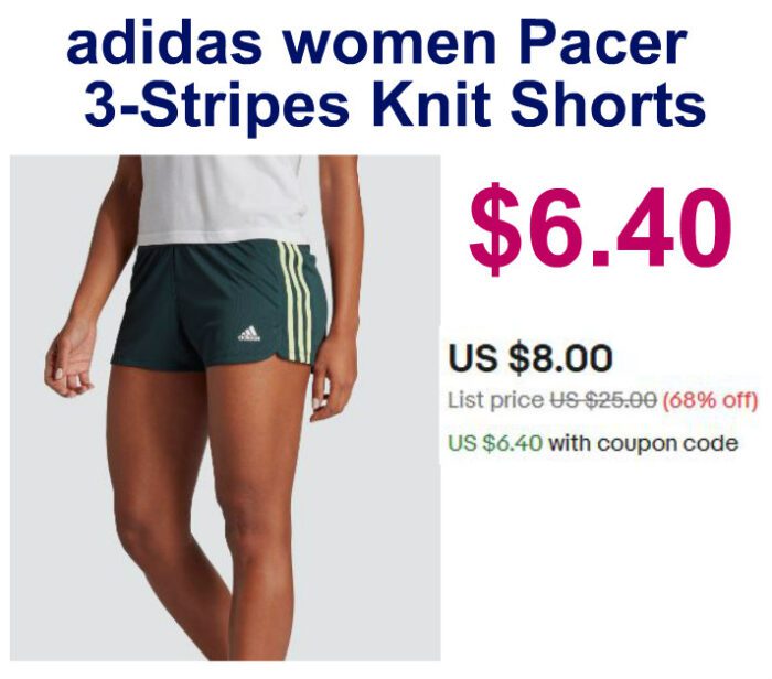 adidas women’s Pacer 3-Stripes Knit Shorts $8.00 (reg $25.00)