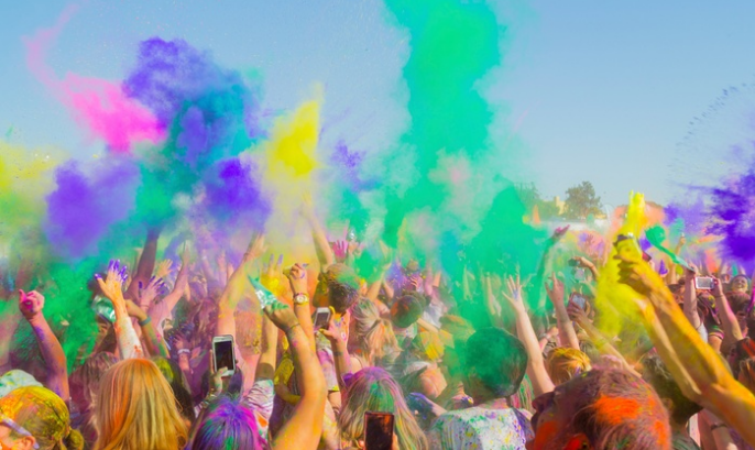 Attendees stock up on dry powders provided by the temple, then douse their hair, clothes, and cheeks in vibrant pinks, greens, blues, and violets. Multihued, they can roam the grounds interacting with fellow revelers, dancing to live music, taking yoga classes, participating in uplifting mantras, and sampling Indian cuisine. Free hugs!
