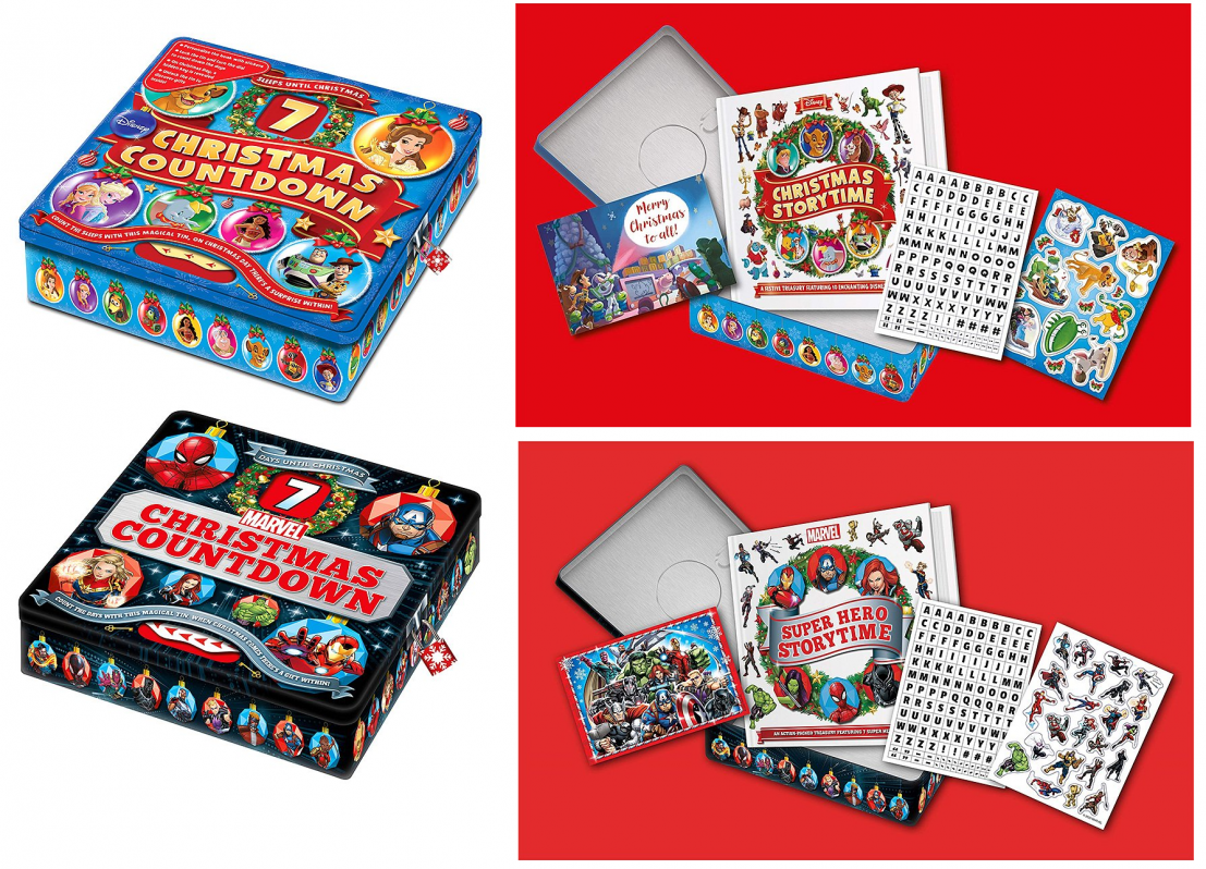 - Includes Marvel seven-day countdown to Christmas box and Disney seven-day countdown to Christmas box (two pieces total)