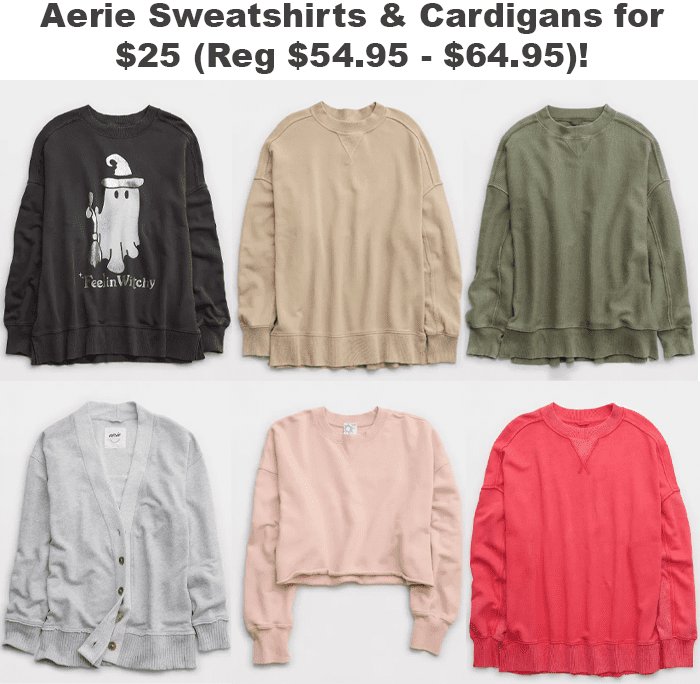 Aerie Sweatshirts & Cardigans for $25 (Reg $54.95 – $64.95)!