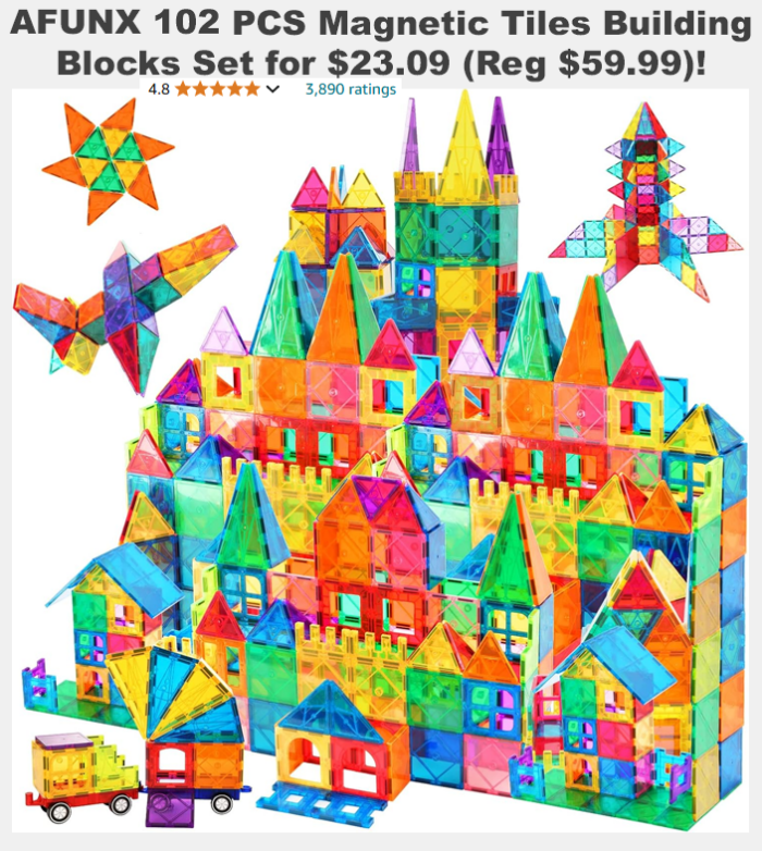 AFUNX 102 PCS Magnetic Tiles Building Blocks Set for $44.99 (Reg $59.99)