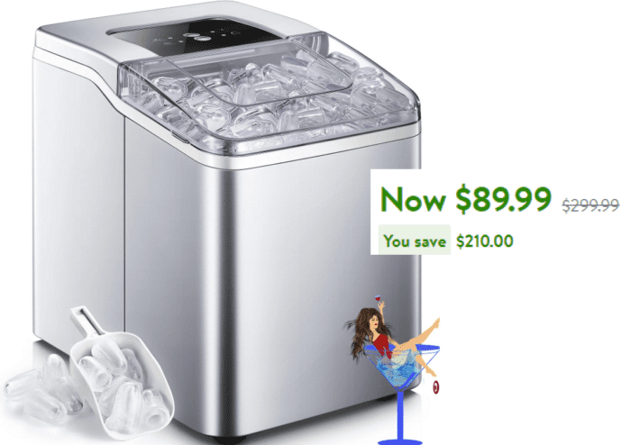 This ice maker can hold a whopping 30 pounds of ice! It can make you 9 ice cubes in just 5 minutes, and you can choose from 2 sizes.