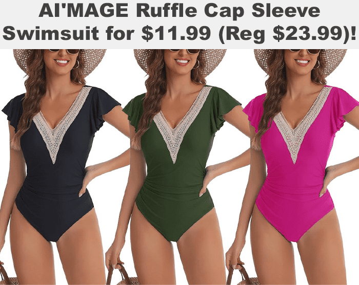 AI’MAGE Ruffle Cap Sleeve Swimsuit for $23.99