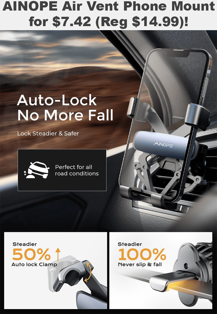 AINOPE Air Vent Phone Mount for $13.49 (Reg $14.99)