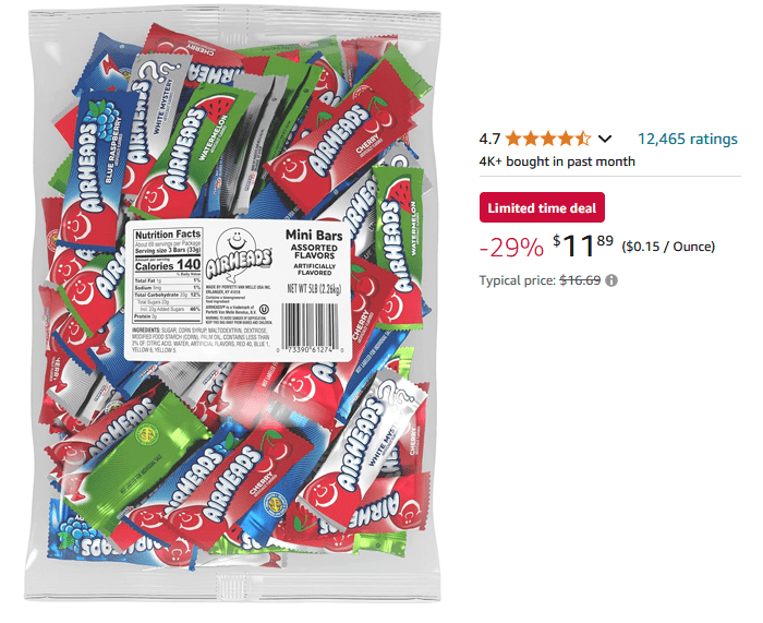 Airheads Mini Bars, 5 Pound Bag for $13.99 (Reg $16.69)!
