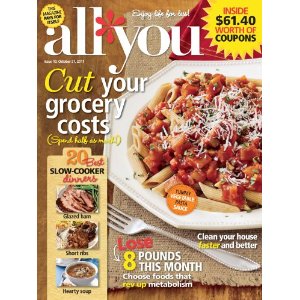 - Coupons: Every issue of All You contains valuable coupons for fashion, food, makeup and household basics. With high coupon totals each month (more than $60 recently), this magazine pays for itself many times over.
