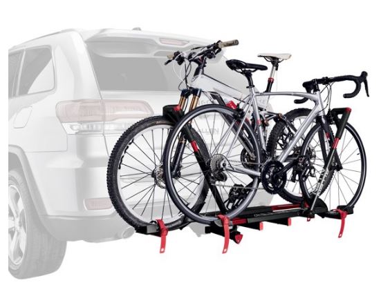 - Easy load 2-bike rack fits either 1 1/4″ or 2″ receiver hitches