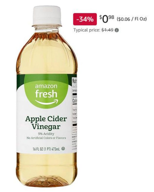 Amazon Fresh, Apple Cider Vinegar, 16 Oz $0.98 (reg $1.49)