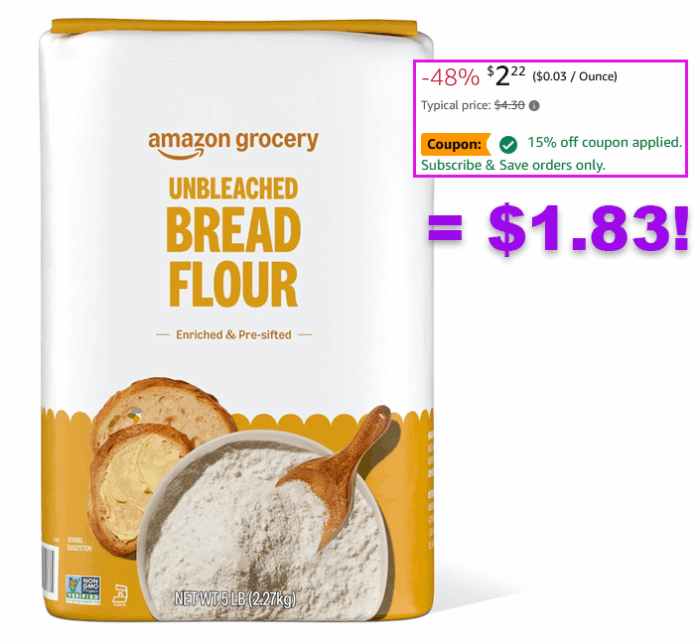 Amazon Grocery, Enriched Bread Flour, 5-lbs for $1.83 (Reg $4.30)!