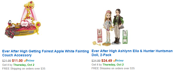If you have a girl that loves Ever After Dolls then this is a HOT deal! Ever After High Dolls and accessories are 50% off over at Amazon. Prices start at just $11! There are many different dolls to choose from. Check these off your Christmas list.