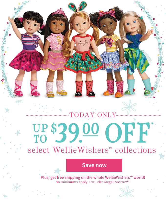 Today only, score up to $39 off American Girl WellieWishers Collections, plus get FREE shipping!