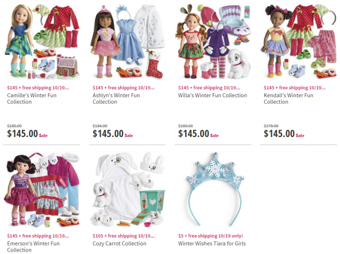 Choose from 5 doll sets, or you can get the super cute Cozy Carrot Collection for $105 (regularly $136) or the Winter Wishes Tiara for Girls for $5 (reg $12)!