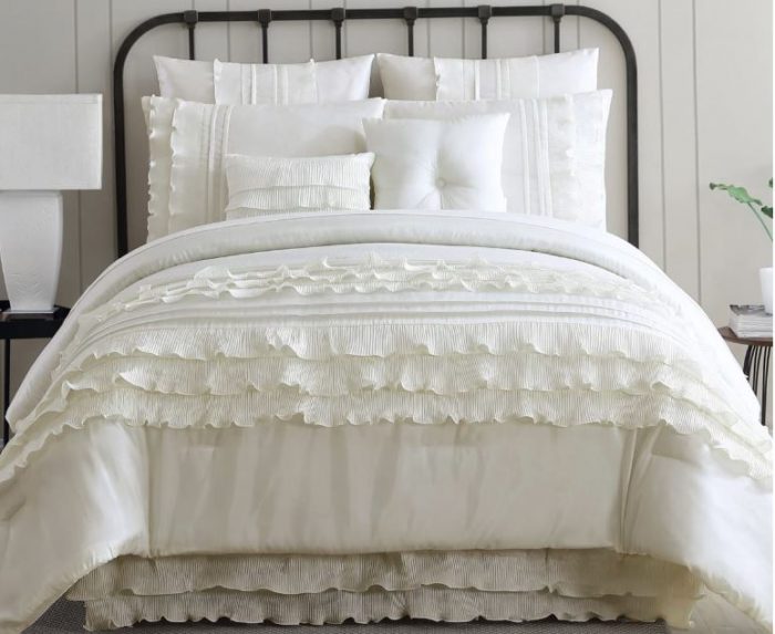 - 1 Comforter, 2 shams, 3 decorative pillows, 2 euro shams, 1 bed skirt