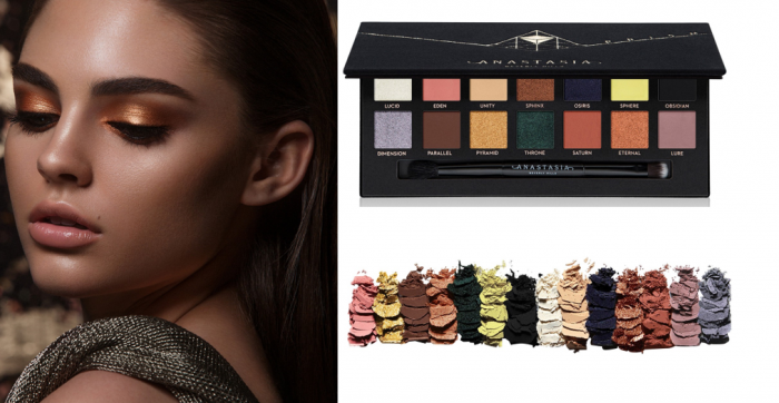 A luxe holiday eye shadow collection with fourteen shades featuring universal neutrals and prismatic metallics.