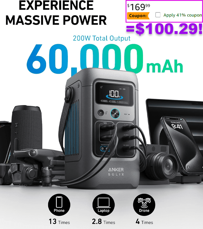 Anker SOLIX C200 DC Power Bank Station (60,000mAh) for $169.99