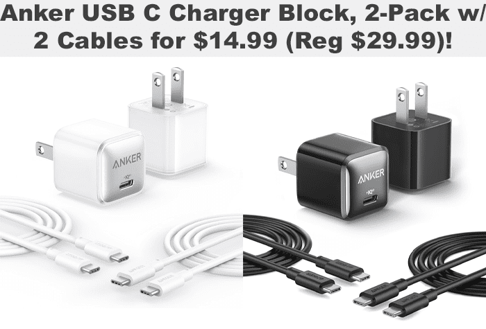 Anker USB C Charger Block, 2-Pack w/ 2 Cables for $14.99 (Reg $29.99)!