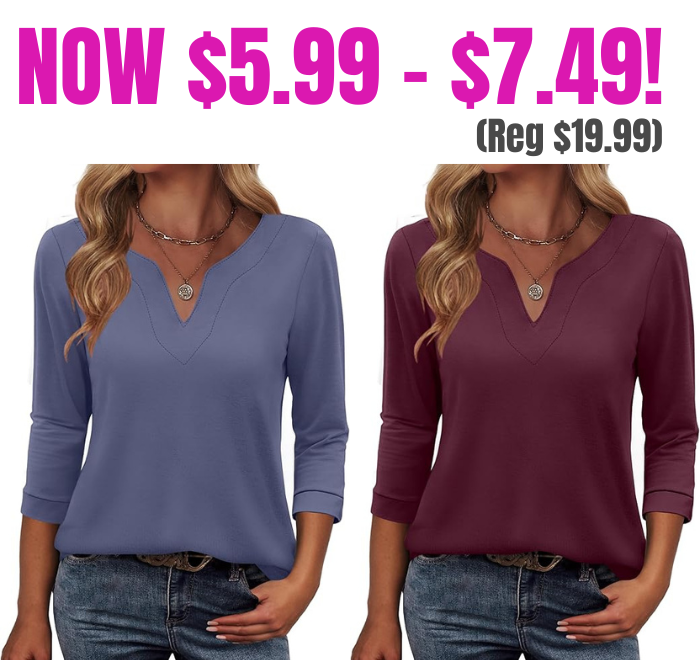 ANRABESS 3/4 Length Sleeve V Neck Tops for $11.99 – $14.99 (Reg $19.99)!