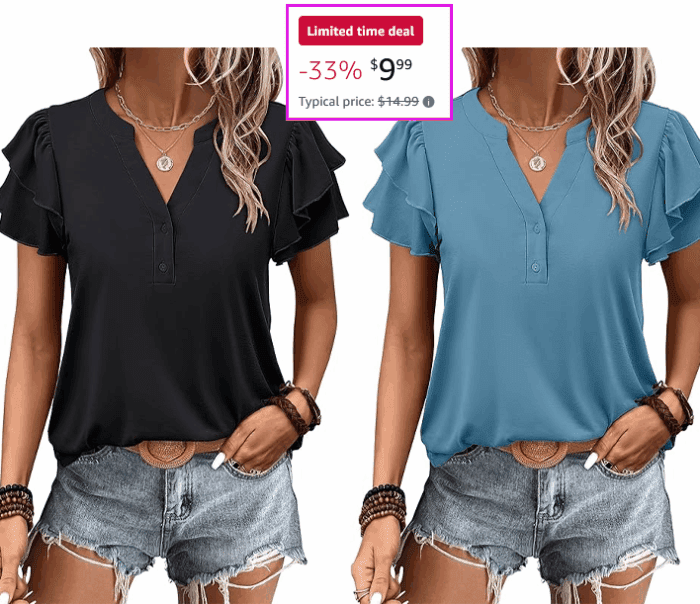 ANRABESS Dressy Casual Ruffle Short Sleeve V Neck Blouses from $9.99 (Reg $14.99)!