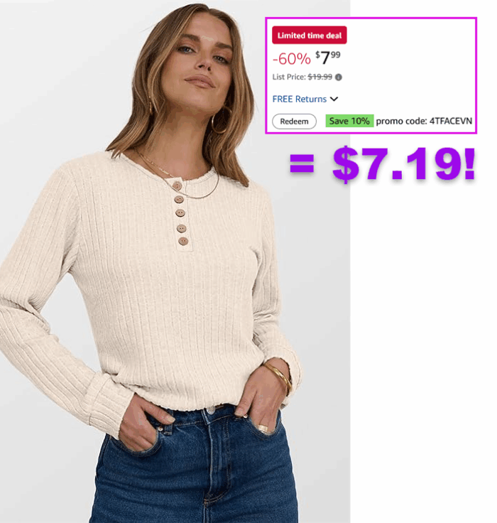 ANRABESS Long Sleeve Henley Shirts from $7.99 (Reg $19.99)