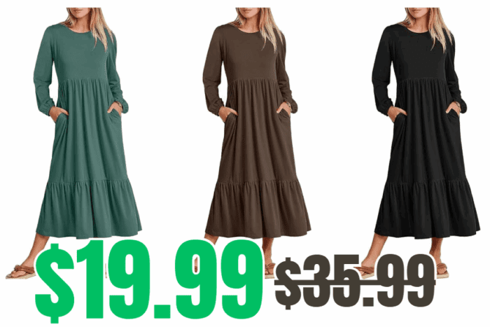 ANRABESS Long Sleeve Midi Dresses for $24.99 (Reg. $35.99)