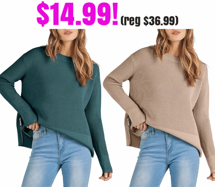 ANRABESS Waffle Knit Side Zipper Sweaters with Thumbhole for $14.99 (Reg $36.99)!