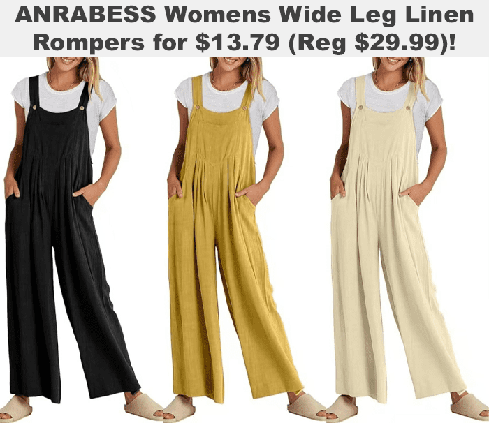 ANRABESS Womens Wide Leg Linen Rompers for $29.99 (reg $35.99)