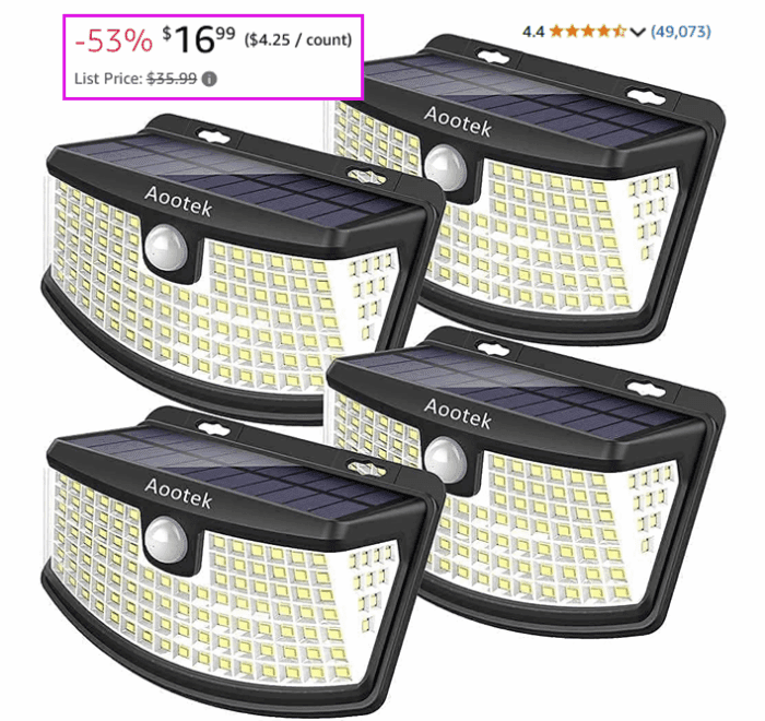 Aootek Solar Motion Sensor Lights, 4-Pack for $16.99 (Reg $35.99)!