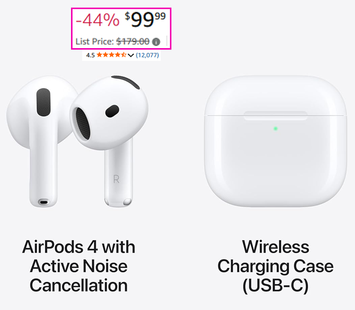 Apple AirPods 4 Wireless Earbuds for $99.99 (Reg $179)