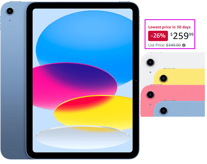 Apple iPad (10th Generation) for $259.99 (Reg $349)