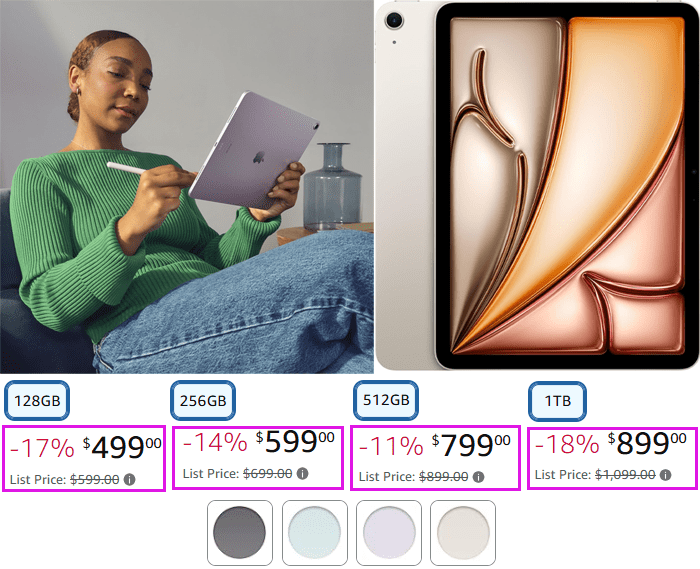 If an iPad is on your wish list, check these out! You can choose from 4 colors in 128GB to 1TB.