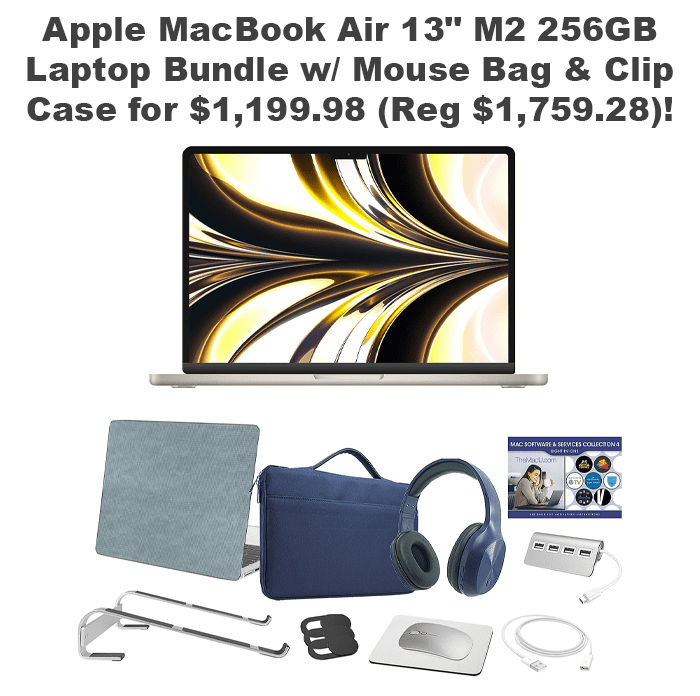 Apple MacBook Air 13″ M2 256GB Laptop Bundle w/ Mouse Bag & Clip Case for $1,199.98 (Reg $1,759.28)!