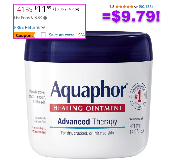 Aquaphor Healing Ointment, Advanced Therapy Skin Protectant, 14 oz Jar for $13.99 (Reg $19.99)