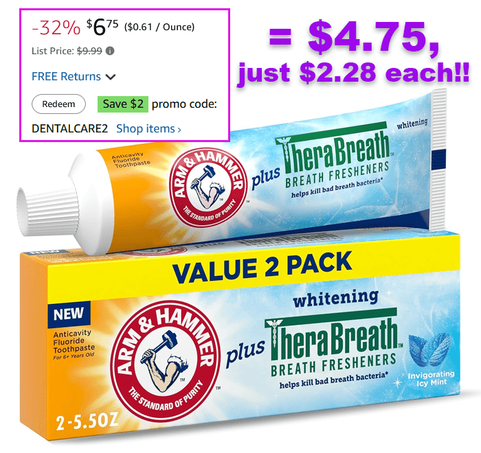 ARM & HAMMER Toothpaste Plus TheraBreath Breath Fresheners, 2-Pack for $7.94 (Reg $9.99)