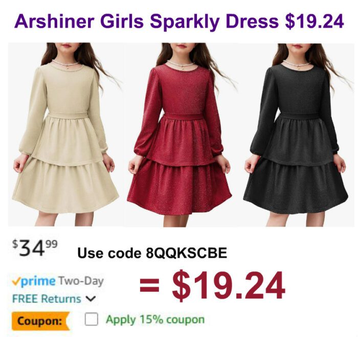 Arshiner Girls Dress Fall Sparkly Glitter Puff Sleeve A-Line Layer Wedding Guest Dresses with Belt $34.99