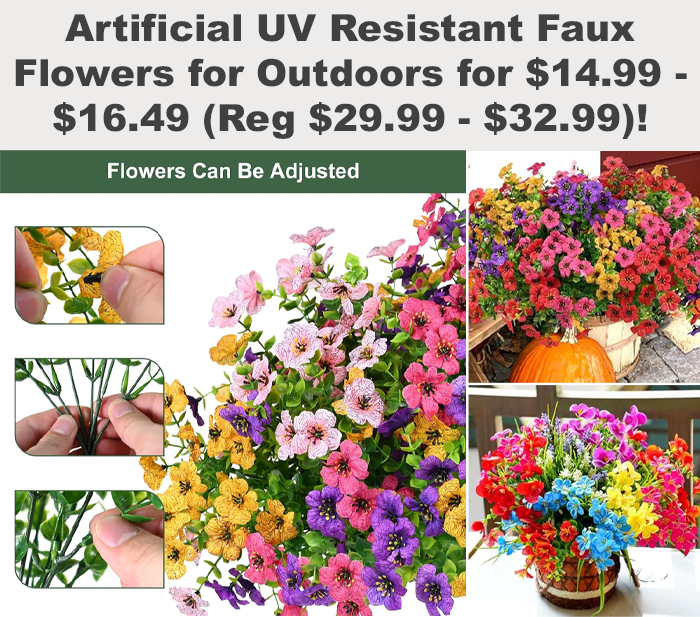 Artificial UV Resistant Faux Flowers for Outdoors for $29.99 – $32.99