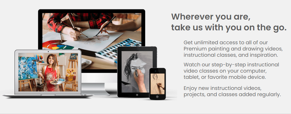 In addition to gaining access to all of the painting and drawing videos, you’ll get 2 bonus video downloads! New videos are uploaded every week, so there’s always something new to try. It’s like having a professional artist right there with you!