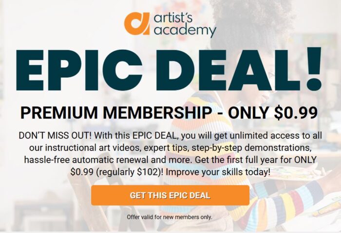 Artists Academy Premium Full Year Membership for only $0.99 (normally $102)!