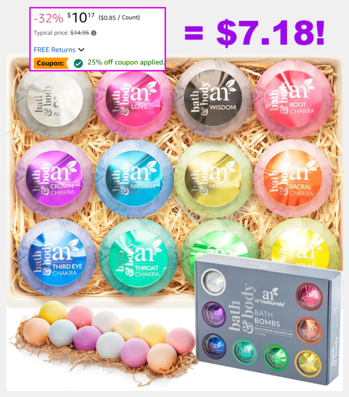 artnaturals Large Bath Bombs Gift Set of 12 for $11.96 (Reg $14.95)!
