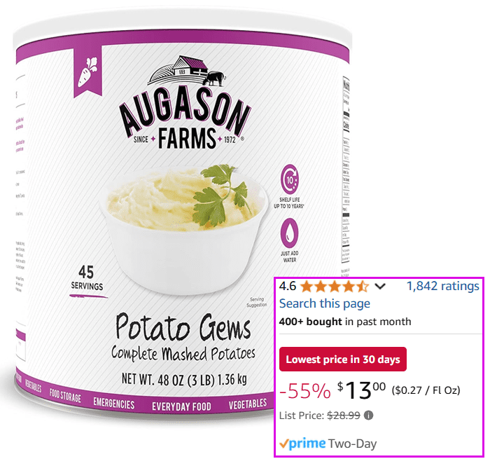 Augason Farms Potato Gems Complete Mashed Potatoes 3 lbs No. 10 Can for $13 (Reg $28.99)