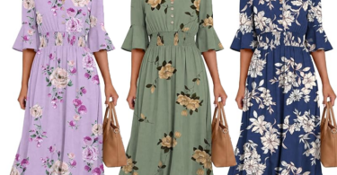 Zeagoo V-Neck Ruffle Sleeve Midi Dress for $13.49 (Reg $34.98)!