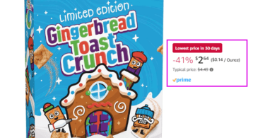 Gingerbread Toast Crunch Cereal, Family Size, 18.8 oz for $2.64...