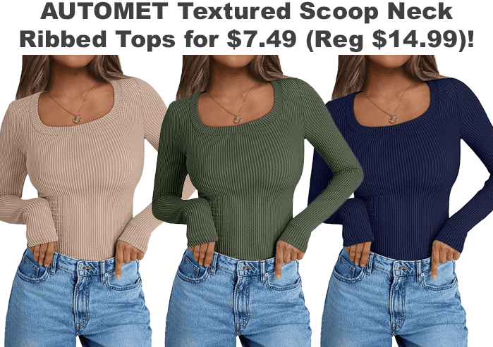 AUTOMET Textured Scoop Neck Ribbed Tops for $14.99