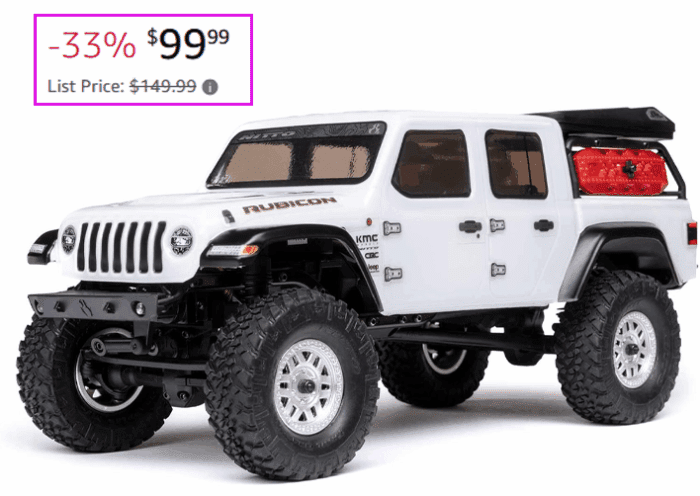 Axial RC Truck SCX24 Jeep Gladiator 4 Wheel Drive Rock Crawler for $99.99 (Reg $149.99)!