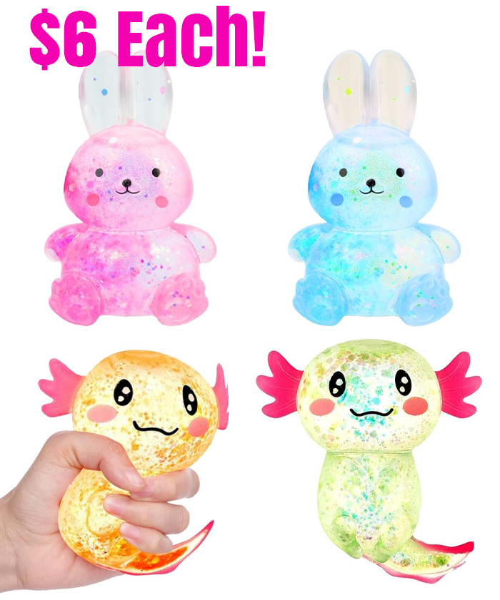 Axolotl & Rabbits Squishy Sensory Toys 4-Pack for $23.99!