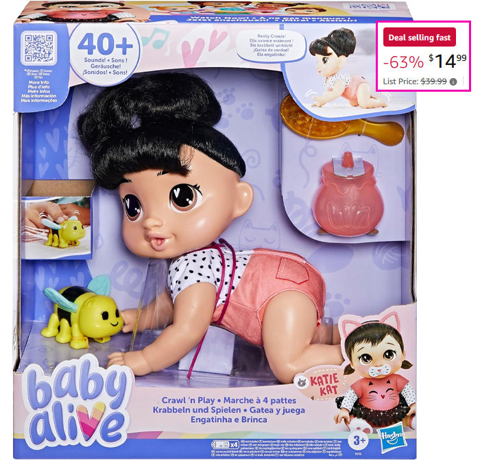 Baby Alive Crawl ‘n Play Katie Kat Electronic Crawling Baby Doll Set for $14.99 (reg $39.99)