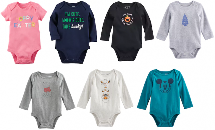 There are a bunch of styles, including Carter’s holiday and Jumping Bean Disney bodysuits  on clearance as low as $1.20